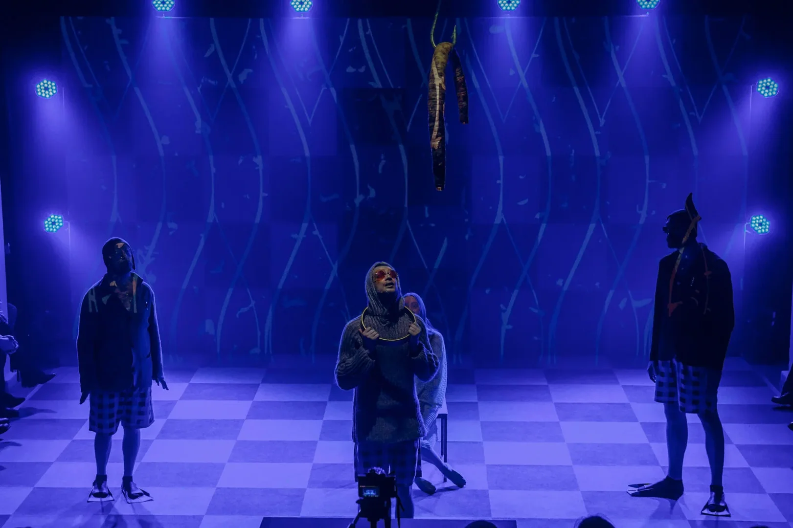 Что увидит зритель? Это секрет. Скажем лишь, что пьеса, по которой поставлен спектакль, называется «Про рыб» (тут самое время уточнить, что это не пластический спектакль, хотя и с очень талантливым хореографом).