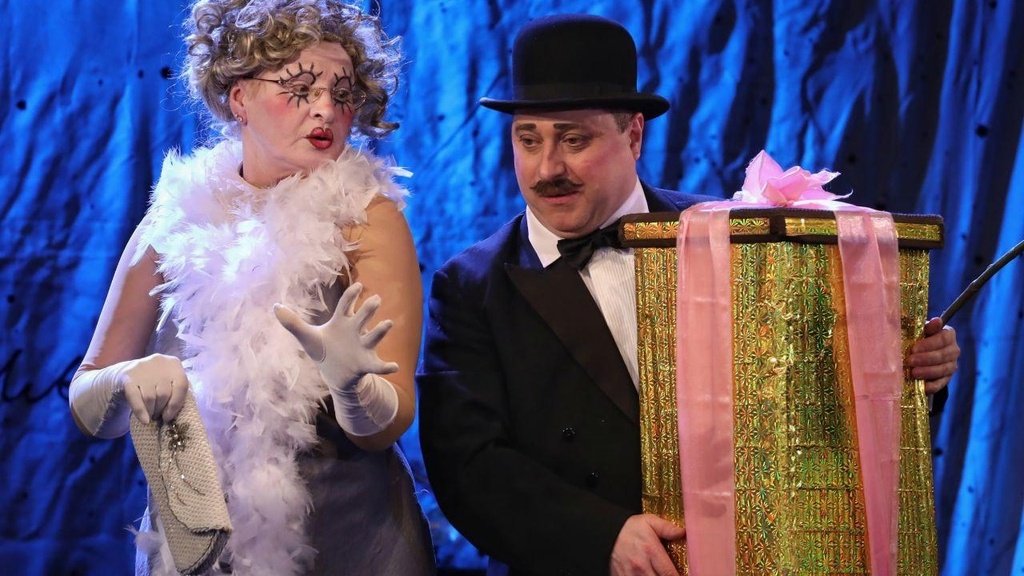 В этой интересной и необычной работе, в театральном клоунском представлении, сделан акцент на элементы абсурда и парадокса в стиле английского юмора компании Monty Python.