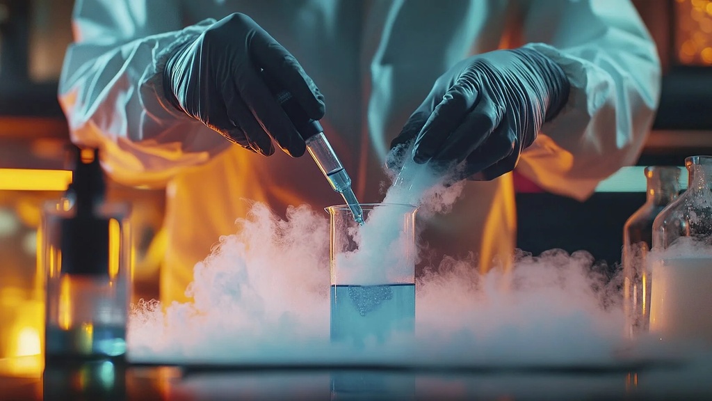 Химическое шоу с яркими реакциями: цветные жидкости, дымящиеся колбы, исчезающие предметы;