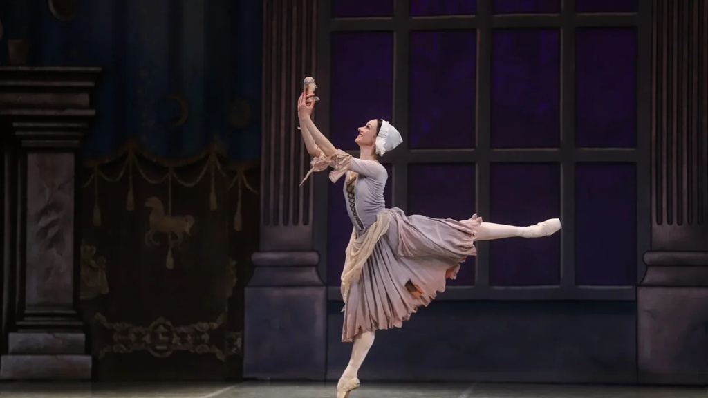 Распорядитель танцев приглашает мачеху и ее двух дочек на бал к принцу, а грустная Золушка остается убирать дом. Крестная фея желает ей помочь и с помощью подруг, фей времен года, дарит Золушке прекрасное платье и туфельки и отправляет на бал, но предупреждает, что вернуться надо ровно в полночь. Золушка блистает на балу и убегает, как и было сказано, теряя туфельку. Влюбленный принц ищет девушку по всему миру, но находит в своем королевстве: мачеха и сестры злятся, а пара исполняет танец первой любви.